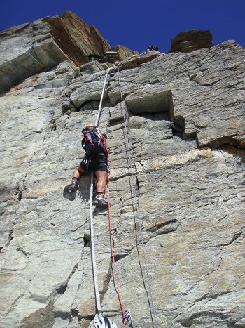 One of the aid ropes at the Cheminee, in the lower section of
